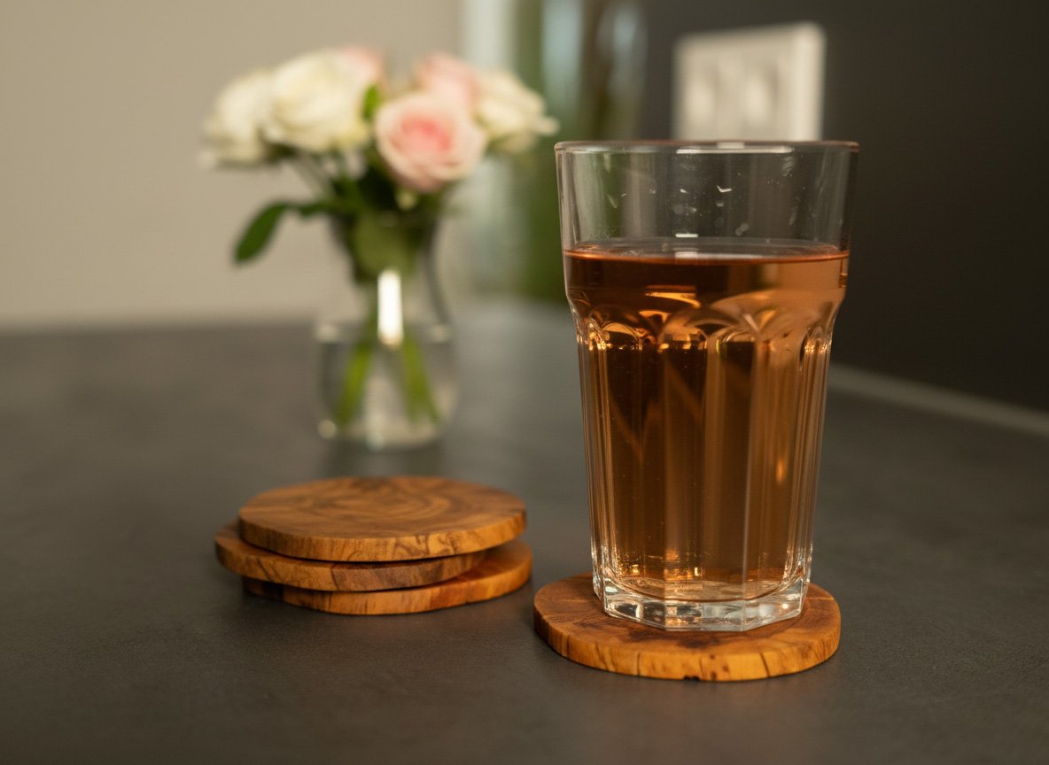 Drusus Sabi Untersetzer sind Reduktion in ihrer reinsten Form. Kreise aus massivem Holz – präzise geschnitten, glatt geschliffen, geölt, roh in ihrer Ehrlichkeit. Jeder Untersetzer ist ein stilles Objekt, die Oberfläche bleibt spürbar – offenporig, matt, warm. Kein Lack, kein Glanz, kein Überfluss.